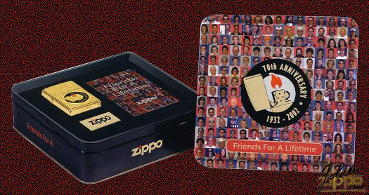 70th anniversary Friends for a lifetime Pour commémorer le soixante-dixième anniversaire de Zippo , Zippo présente fièrement des amis pour une vie. Limité seulement à 70.000 exemplaires, ce onzième et dernier collector de l'année est une reproduction du modèle 1941 en laiton. |