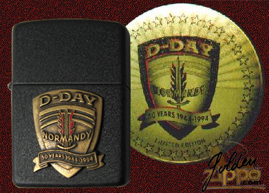 The D-DAY Cette année correspond au 50ème anniversaire du débarquement en Normandie, le 6 juin 1944. Zippo reprend le look "back crakle" des briquets de la seconde guerre mondiale . Le message adressé aux troupes le 6 juin 1944 par le Général Dwight D. Eisenhower est imprimé à l'intérieur du couvercle du boîtier.. |